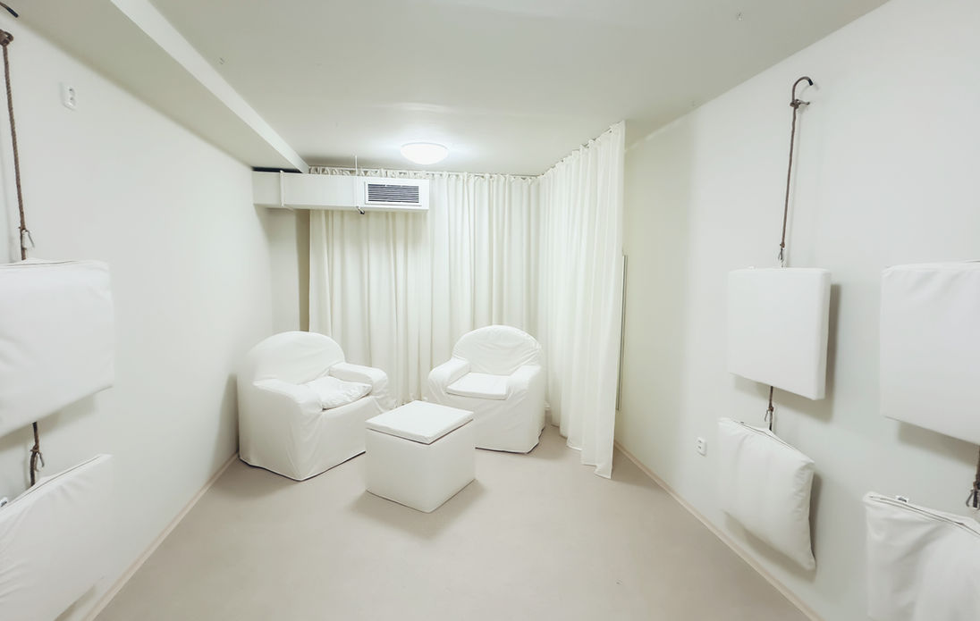 Hlavním prvkem Snoezelen místnosti jsou tři originálně navržené sedací objekty z lehkého materiálu, potažené dvouvrstvým textilním systémem.